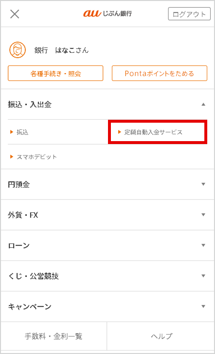 定額自動入金サービスは、お客さまご本人名義の金融機関から、毎月一定額をauじぶん銀行の口座に無料で取寄せできるサービスです。