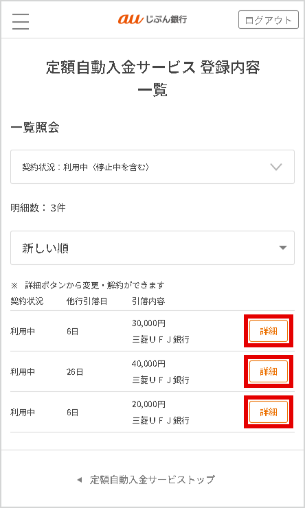 - 定額自動入金サービスの解約は引落日の8営業日前の前日までにご登録が必要です。