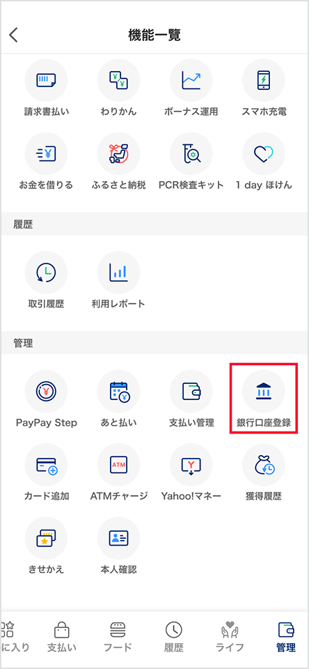 • 本人確認が済んでいない場合は「銀行口座登録」を選択後、本人確認の手順に進みます。
