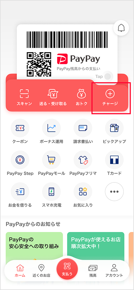 PayPay(残高へのチャージ)はポイントがたまるお取引