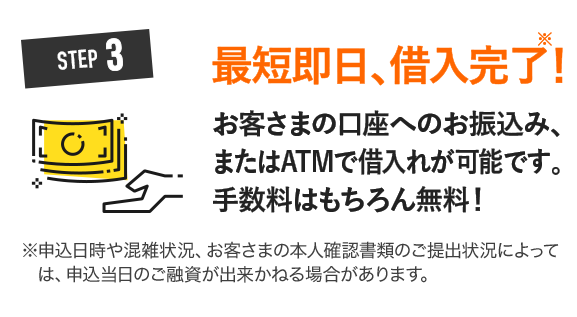 お申込みからお借入れまでたったの3STEPで完了!